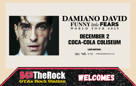 Damiano David Coca-Cola Coliseum - Toronto, On Tue, 2. December 2025, 8:00 pm The Rock welcomes lead singer of Maneskin, Damiano David to Coca Cola Coliseum on December 2nd, 2025! Previous article: The Mars Volta Prev Next article: The Tea Party, Headstones, Finger Eleven Next